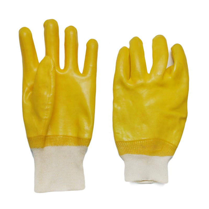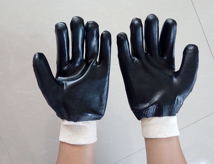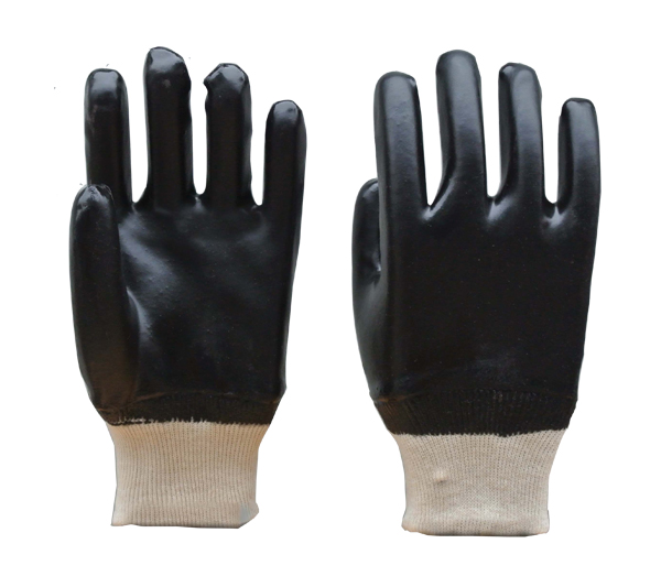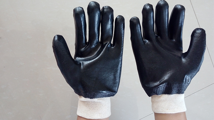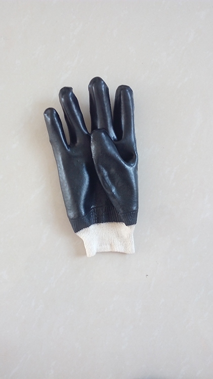 Smooth Finish Cotton Knit Wrist Black PVC Glove